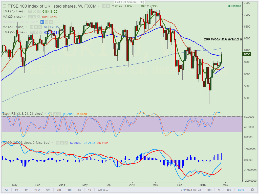- FTSE100 major support is around 6300 and break below targets 6230/6180/6110 in short term.