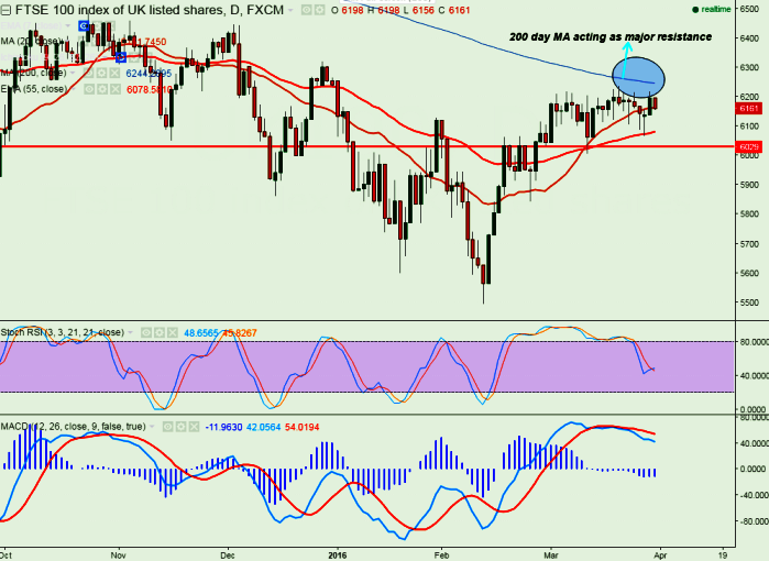 - Major resistance is around 6245 (200 day MA) and any break above 6245 confirms major trend reversal, jump till 6325/6348 is possible. The minor resistance is around 6220.