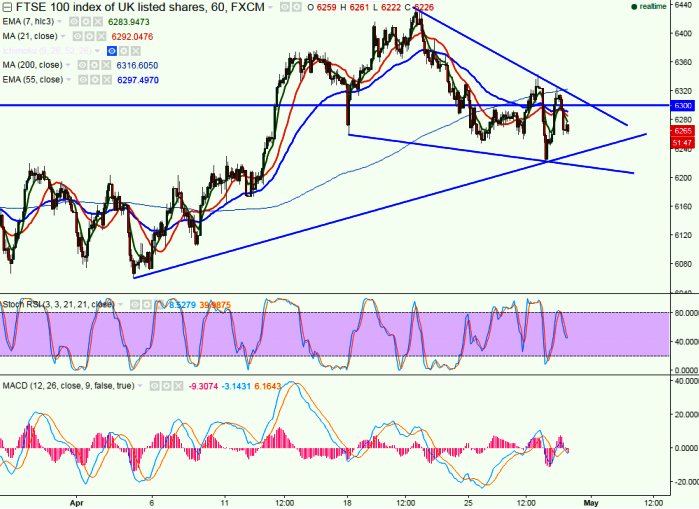 - FTSE100 has recovered after making a low of 6222 made a low of 6248 yesterday and slightly recovered till 6298 from that level. It is currently trading 6270.