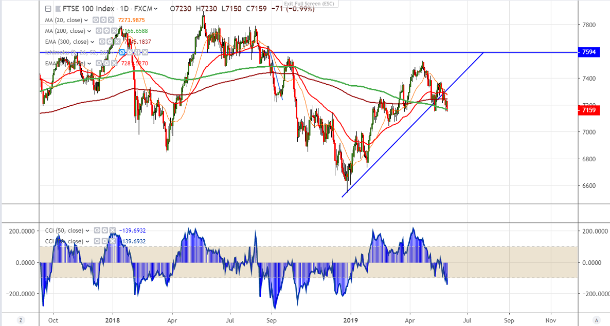 On the lowerside, near term major support is at 7149 low made on May 13th 2019 and any further weakness only below that level. Any violation below will drag the index till 7100/7075. Any break below 7040 confirms bearish continuation.