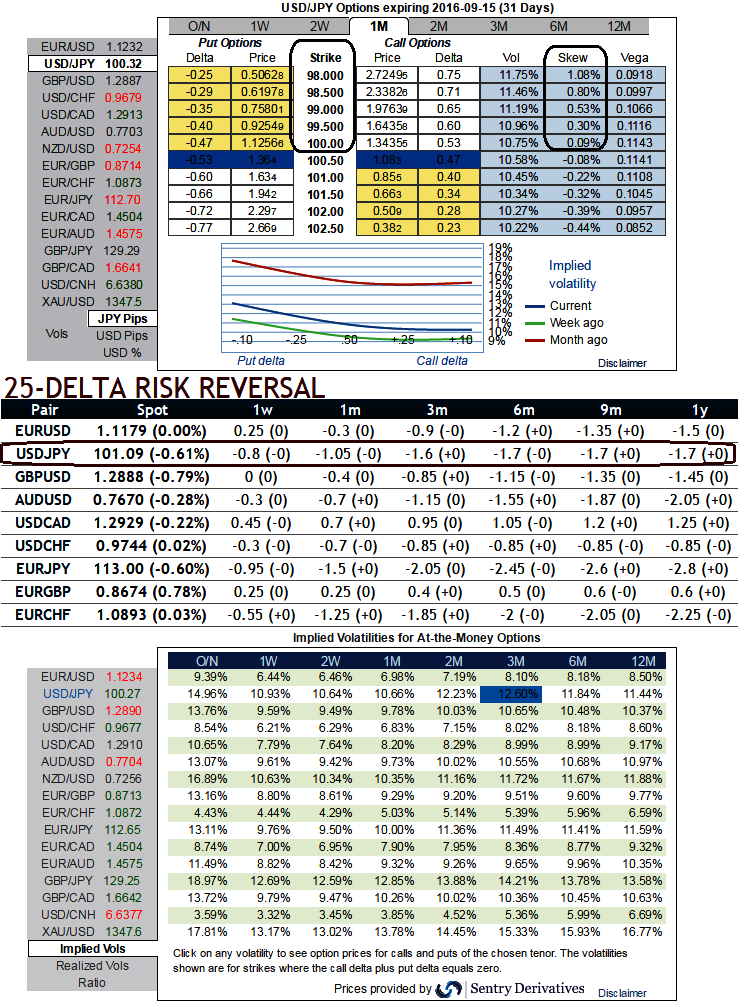 The delta risk reversal for USDJPY in long-term indicates more bearish pressures in FX option markets.