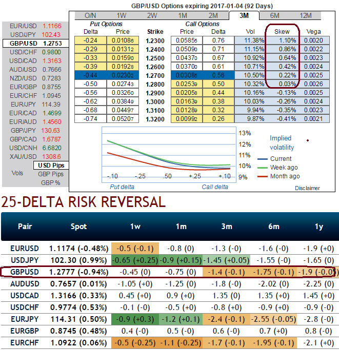 Since the GBPUSD’s implied volatility is perceived to be rising among the major currency counterparts (3m ATM contracts spiking above 11%).