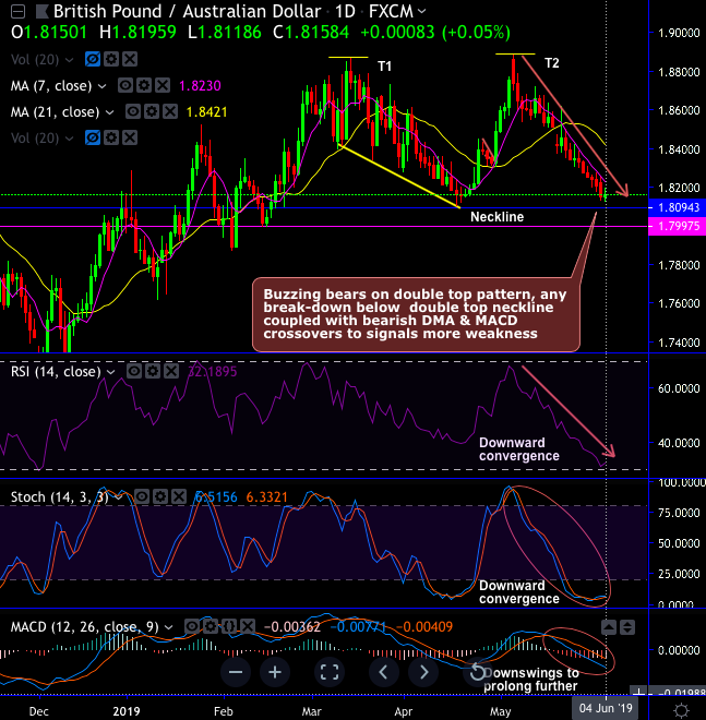 You can spot buzzing bears upon the double top pattern which is bearish in nature, any break-down below double top neckline coupled with bearish DMA & MACD crossovers to signal more weakness.