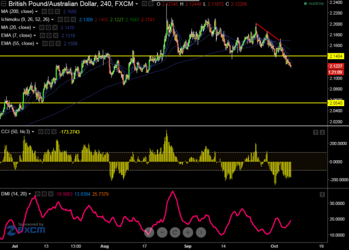 - GBP/AUD has broken short term support 2.140 and declined till 2.1187. It is currently trading at 2.1214.