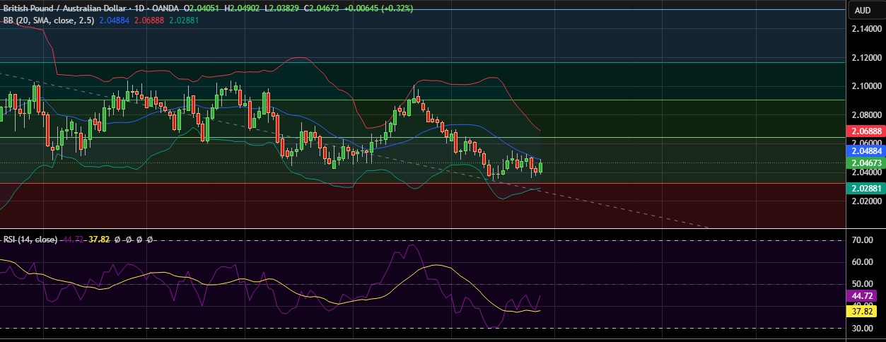• Strong support is seen at 2.0328 (23.6% fib) and break below could take the pair towards 2.0284(Lower BB).