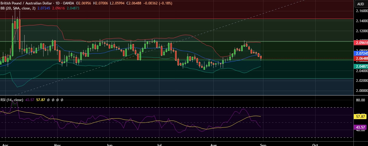 • Immediate support is seen at 2.0613 (50%fib) and break below could take the pair towards 2.0495 (Lower BB).