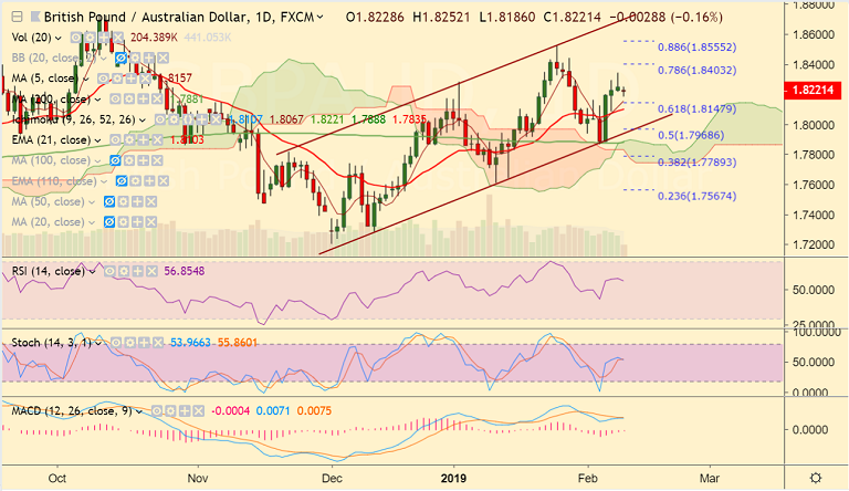 - GBP/AUD trades 0.21% lower at 1.8211 at 1055 GMT.