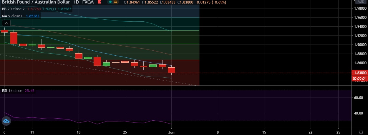 • GBP/AUD declined on Monday as optimism over economies opening up again boosted demand for riskier currencies like Australian dollar.