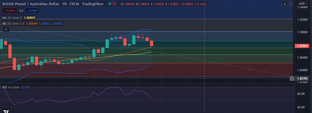 • Strong support is seen at 1.8750 (50%fib) and break below could take the pair towards 1.8687 (30DMA).