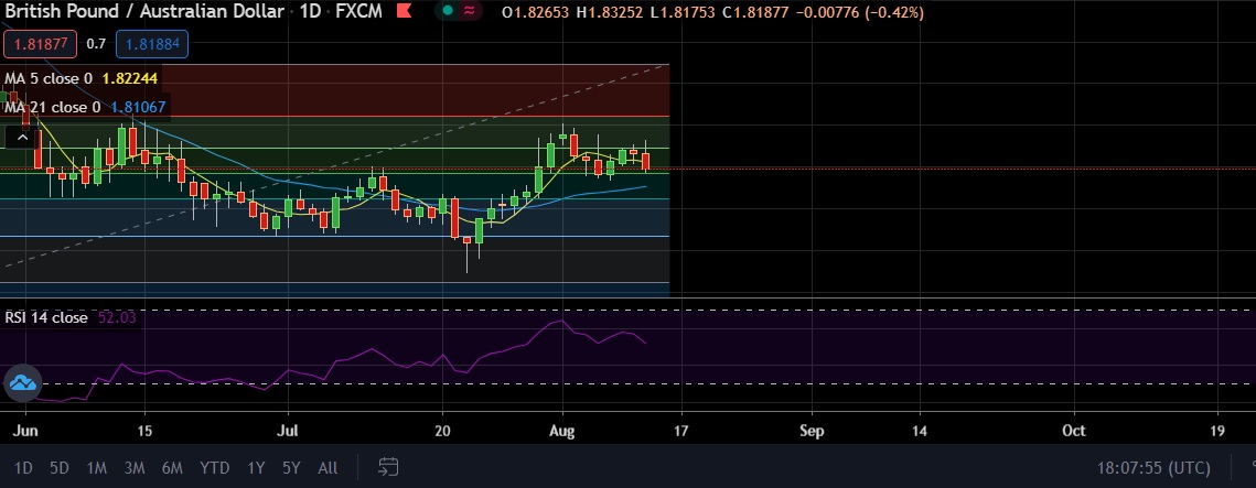 • On the upside, Immediate resistance is located at 1.8237 ( 5 DMA), any close above will push the pair towards 1.8293 (38.2% fib)