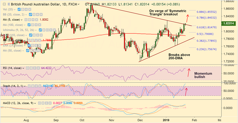- Immediate support is seen at 5-DMA at 1.8082. Break below 200-DMA negates bullish bias.