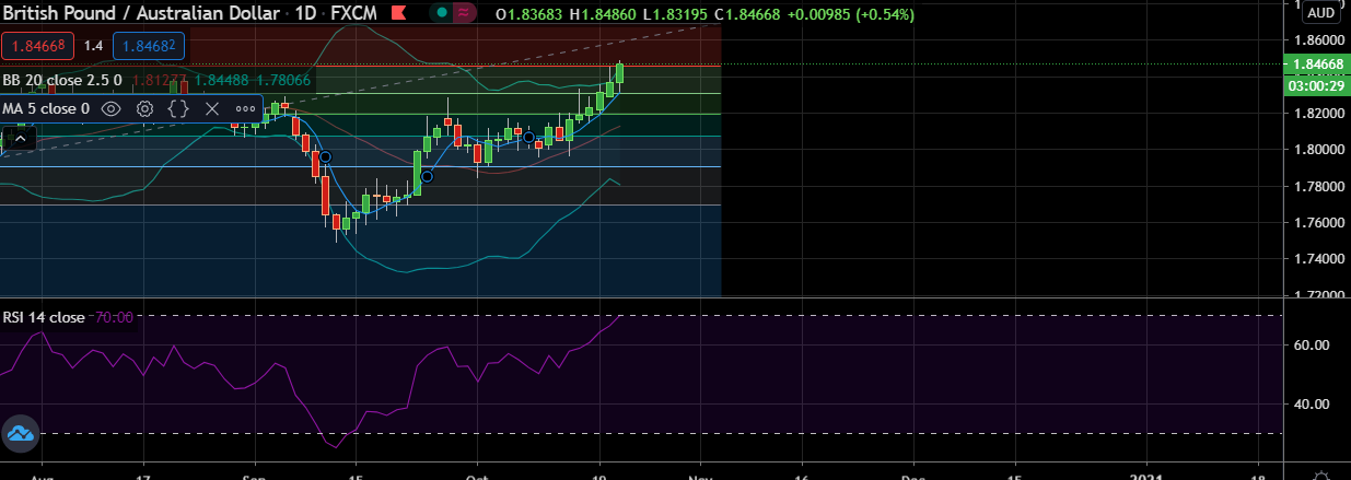 • At GMT 18:01, the pair was trading up 0.51 percent at 1.8463 highest since June 1st 2020.