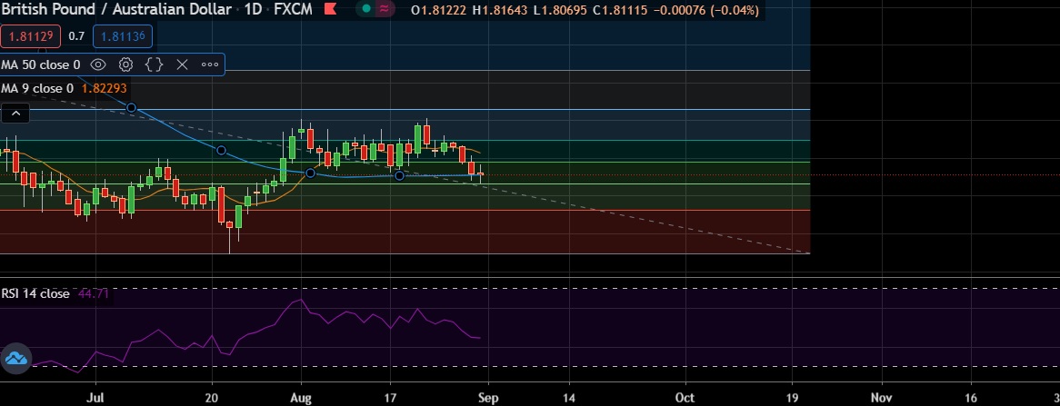 • On the downside, strong support is seen at 1.8061 (38.2% fib ) and break below could take the pair towards 1.7922 (23.6% fib).