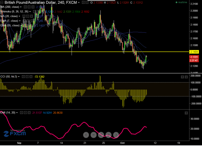 - GBP/AUD has broken short term support 2.140 and declined till 2.1150. It is currently trading at 2.1214.