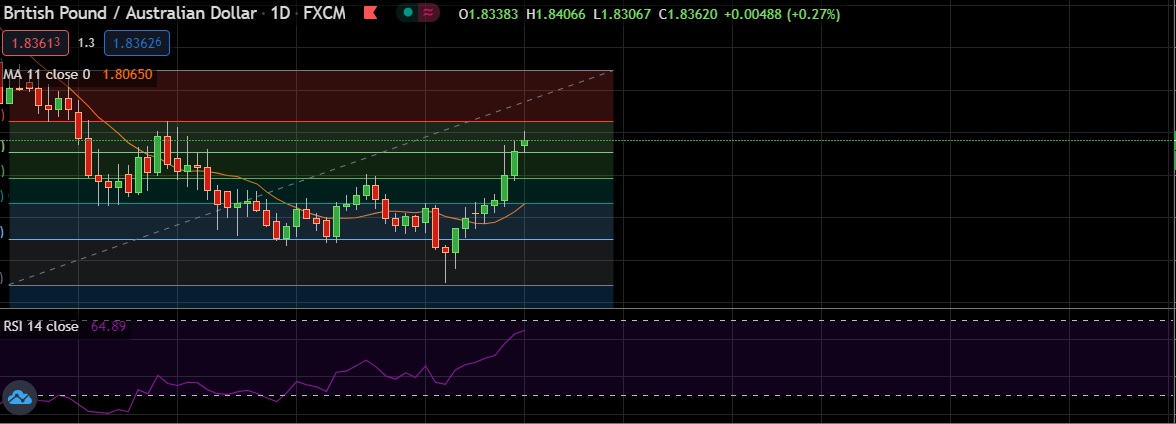 • The pairs rise above the 1.8306 (38.2% fib) has reinforced the growing bullish strength, putting focus on 1.8500 Psychological levels.