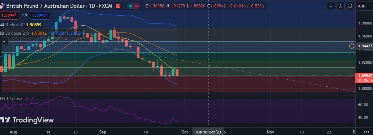 • Immediate support is seen at 1.8970(23.6%fib) and break below could take the pair towards 1.8905(Lower BB).
