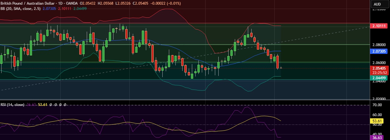 • GBP/AUD slipped lower on Tuesday as fiscal concerns intensified as UK gilt yields rose, with the 30-year yield hitting its highest level since 1998.