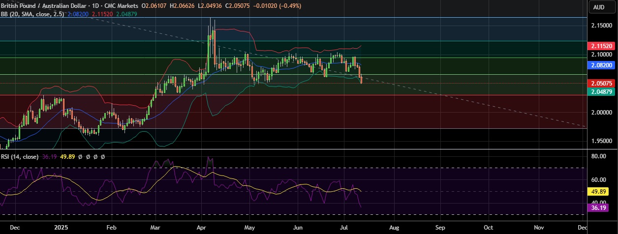 • Immediate resistance is located at 2.0655(38.2% fib), any close above will push the pair towards 2.0810 (20 SMA).