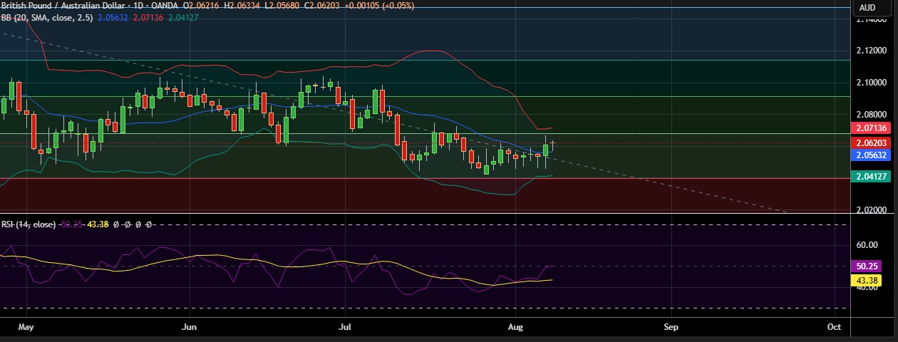 • Immediate support is seen at 2.0567(SMA 20) and break below could take the pair towards 2.0411(Lower BBA).