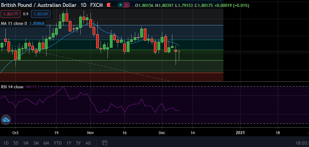 • GBP/AUD after hitting daily low 1.7914 in early Asian session, recovered some ground in the US session, it was last trading at 1.8020 (GMT 17:49).