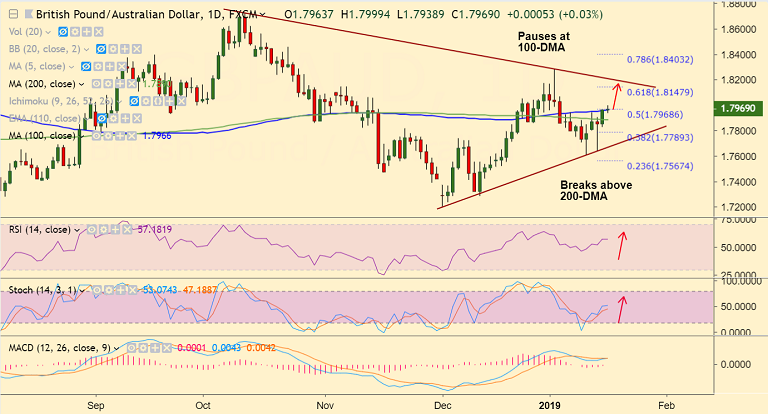 - The pair trades with a positive technical stance, has broken past 200-DMA resistance.