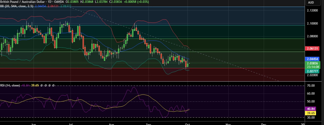 • Immediate support is seen at 2.0295 (23.6%fib) and break below could take the pair towards 2.0274 (Lower BB).