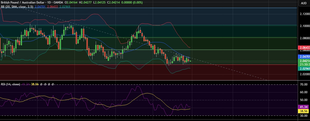 • Immediate support is seen at 2.0360 (23.6%fib) and break below could take the pair towards 2.0290 (Lower BB).