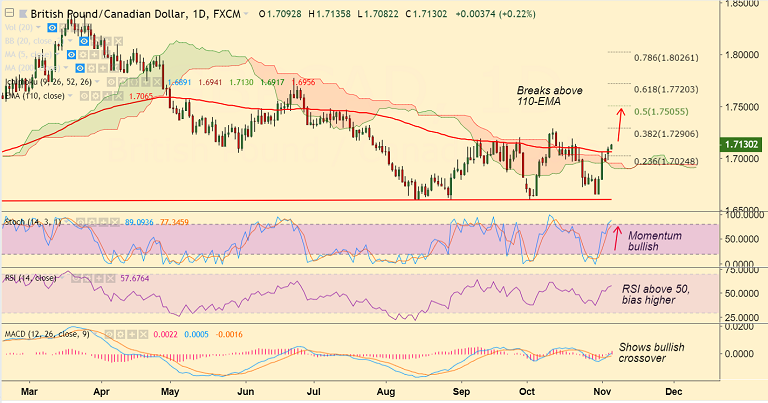 Resistance levels - 1.72, 1.7285 (Oct 11 high), 1.7290 (38.2% Fib)