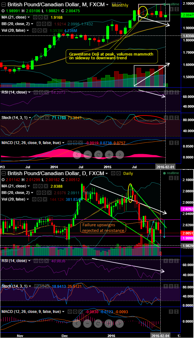 A sharp "Gravestone Doji" candle pattern appeared at peaks of 2.0133 on monthly charts that has more bearish potential which is yet to evidence the dips.