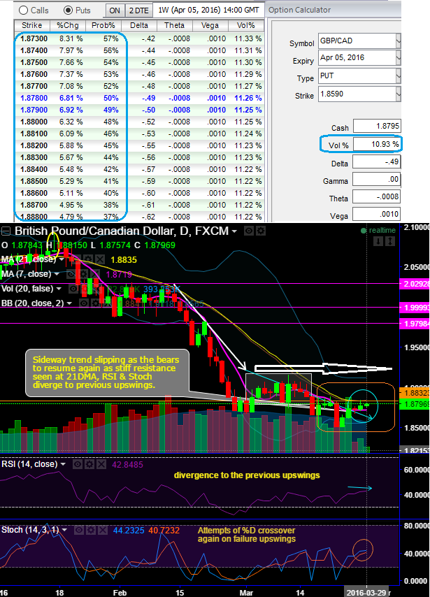 At current spot at 1.8795 the pair moving in no-directional trend and with stagnant IVs, keeping these factors into consideration we would like to place below trade positions to achieve certain returns though shorting a strangle as there are no significant data events that could bring in momentum on either side and evidence drastic movement.