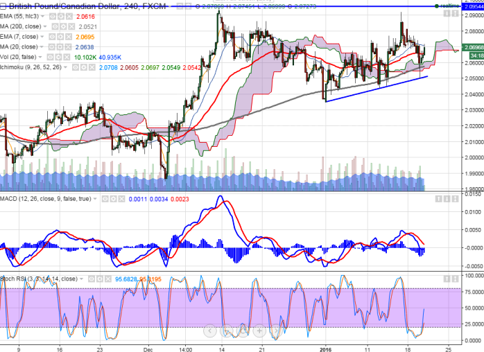 - GBP/CAD has made a low of 2.050 yesterday and started to recover from that level. It is currently trading around 2.06966.