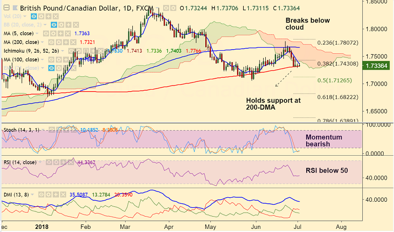 Support levels - 1.7321 (200-DMA), 1.7126 (50% Fib), 1.7054 (May 30 low), 1.6822 (61.8% Fib)