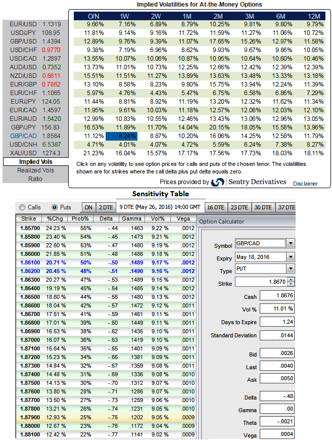 1W GBPCAD ATM implied volatilities have been just shy below 8.25% (the least among G7 currency pairs) which in turn a cause of concern as to whether spot FX would move in sync with vols or not.