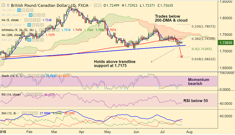Support levels - 1.7248 (5-DMA), 1.72, 1.7165 (trendline), 1.71