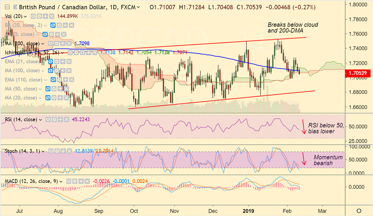 - The pair has slipped below daily cloud and 200-DMA support raising scope for further weakness.