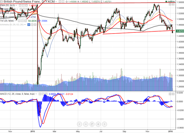 - GBP/CHF has broken major support 1.4600 and declined till 1.4500 level. It is currently trading around 1.4570.