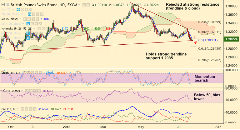 - GBP/CHF is trading in a narrow range. Price action seems capped below 5-DMA.
