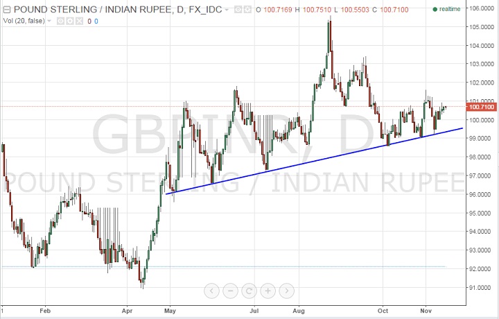 Last week pound has been struggling to break 1.527 resistance area against Dollar and there are possibilities of a downfall if it fails to clear it. Even then the pair might move up against INR as we expect to be Rupee to much weaker in the event of a risk aversion and UK economy has more to gain from further easing from ECB than India or Rupee.