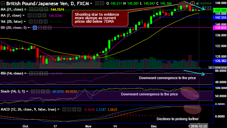 7-weeks uptrend now seems edgy as the shooting star has been traced out at 146.698 levels on the daily chart.