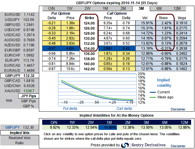 The ATM IVs of GBPJPY of 2W expiries are at just tad above 12%, and 13.50% for 3M tenor.