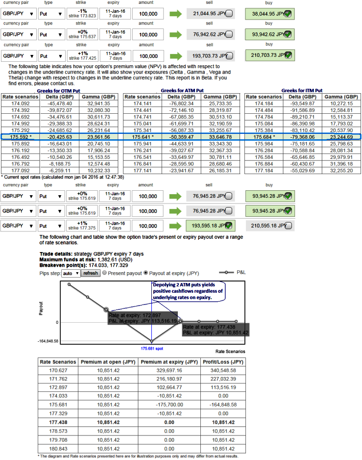 Hence, go long on 1W 2 lots of at the money -0.50 delta puts with gamma at 0.33 and simultaneously shorting 3D Out-Of-The-Money put option is recommended to reduce the cost of hedging by financing long position in buying At-The-Money Puts.