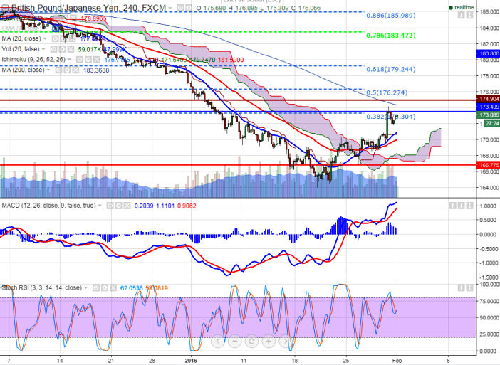 - On the higher side major resistance is around 174.30 (200 day 4HMA) and any break above will take the pair to next level till 175/176.27.