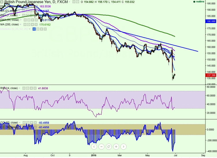 - The bear trend from 160.11 till 133.21 will come to an end if the pair breaks and closes above 142.50 level.