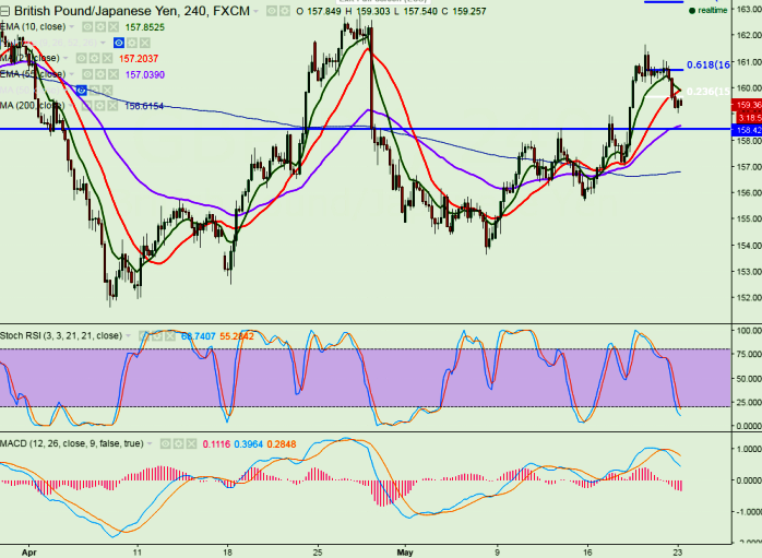 - GBP/JPY resistance is around 160.65 (61.8% retracement of 161.64 and 159.02) and any break above targets 161.60/162.30/162.80.
