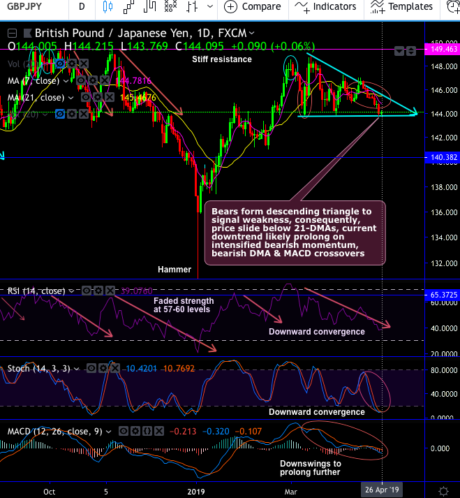 Before we proceed further, just quickly glance through our previous write-up on this pair, where we advocated short hedges. Refer below weblink for more reading: https://www.econotimes.com/FxWirePro-GBP-JPY-bulls-in-both-minor-trend-and-consolidation-phase-seem-weaker-on-bearish-engulfing-patterns--Trade-boundary-strikes-1439043