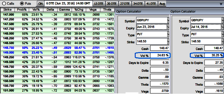 Please have a glance on implied volatilities of ATM puts, the IVs of this pair of 1w expiry is at 24.63%.