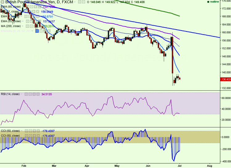 - Any break above 140 will take the pair to immediate resistance at 142.50 (7 day EMA)/ 144.08 (High made after Brexit)/146.66 (Daily Tenkan-Sen).The minor resistance is around 139.