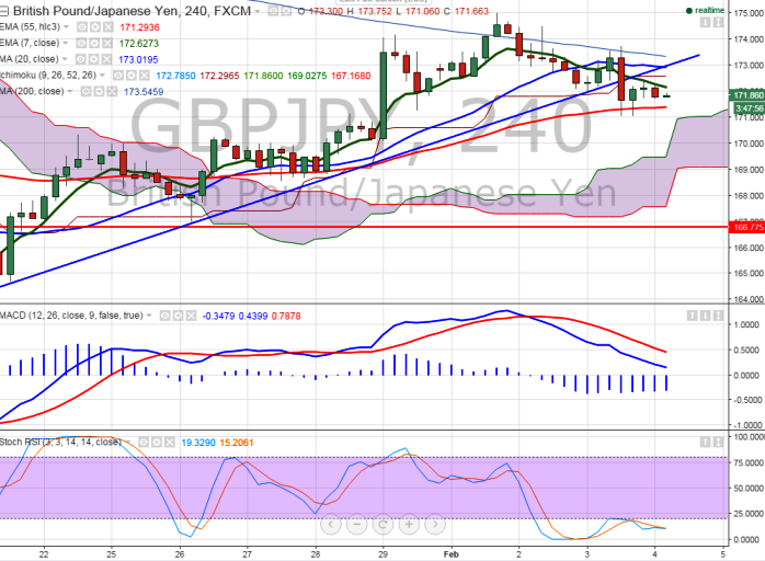 - The pair's major resistance is around 172.55 (Tenken-Sen) and any break above will take the pair till 173/173.75/175.