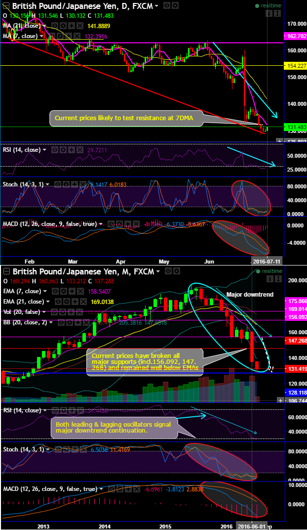 Although the pair has taken trendline support at 128.602 but likely to test the resistances at 7DMA levels (i.e. 132.3916 levels).