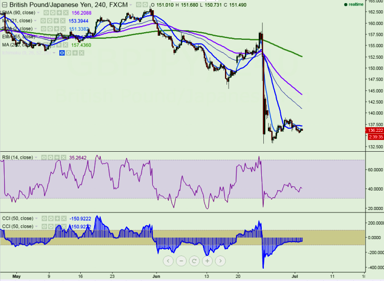 - Any break above 140 will take the pair to immediate resistance at 142.50 (7 day EMA)/ 144.08 (High made after Brexit)/146.66 (Daily Tenkan-Sen).The minor resistance is around 139.